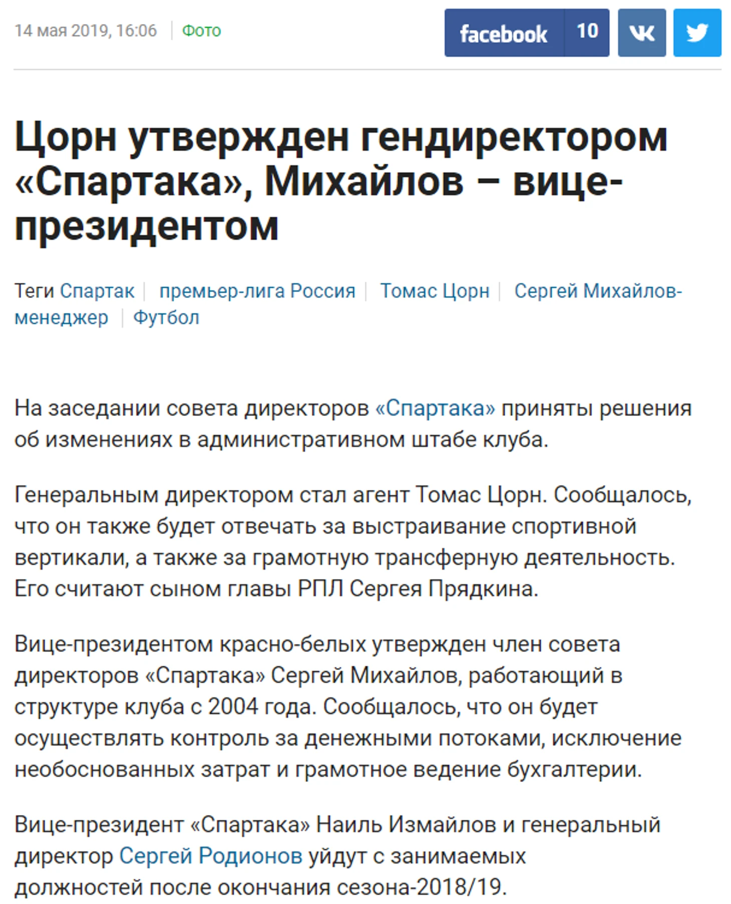 Футбольный агент, сын Прядкина и организатор разного рода сборов сегодня официально попрощался со «Спартаком», проработав генеральным директором клуба 1 год, 1 месяц и 23 дня. Решение об отставке принял совет директоров