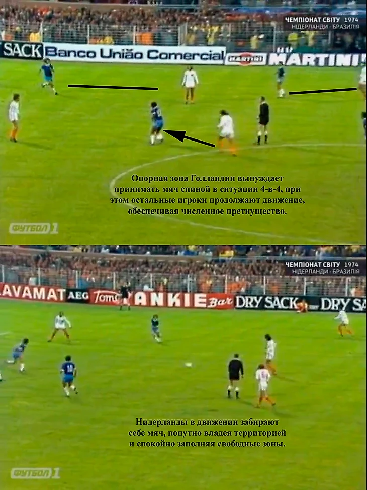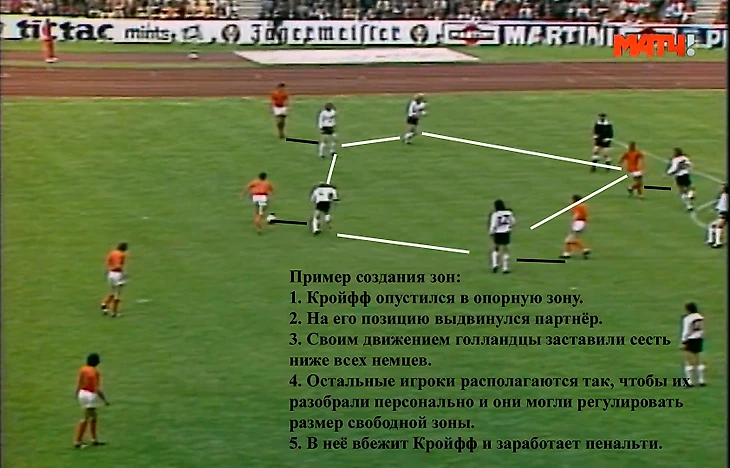 Таким образом, Нидерланды получали контроль над зонами и могли регулировать, насколько большими они будут. Ещё они получали численное преимущество для розыгрыша мяча. Для того времени это была настоящая революция.