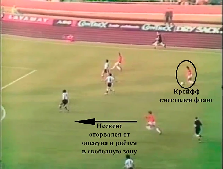 Характерно, что Кройфф так играл не только в атаке или первой фазе прессинга. Он часто менялся позициями с центральными полузащитниками и для сохранения структуры мог опуститься на позицию центрдэфа.