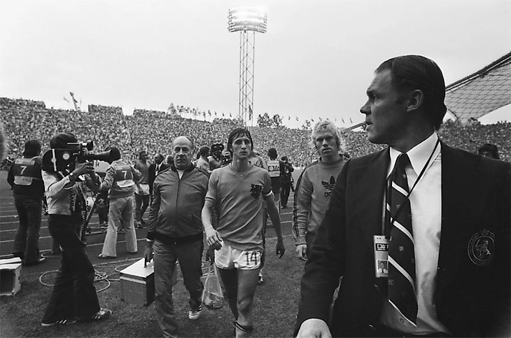 В 1974-м году «Аякс» практически полным составом отправился на чемпионат мира. Голландия дошла до финала с разницей мячей 14-1, в том числе обыграв Уругвай, Бразилию и Аргентину. Сборная Нидерландов продемонстрировала миру тотальный футбол, основанный на активной смене позиций и агрессивном высоком прессинге.