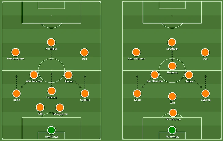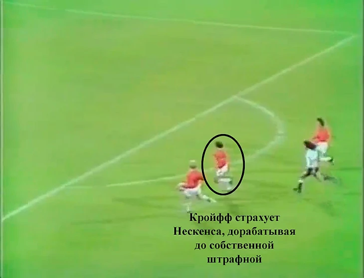 Прессинг не всегда был таким ужасающим, но он был системным. Йохан Нескенс, или игрок, оказавшийся на его позиции, часто выбрасывался на соперников и преследовал его до самого конца, а партнёры поддерживали его движение. Для чего было?