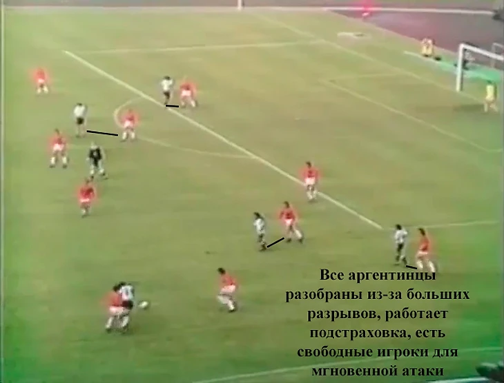 Для команд, играющих персонально, такой футбол был сущим адом. Если игрок подключался в атаку, его место должен был занять партнёр. Что делать его опекуну? Опускаясь за ним, он оголял зону, которую мог заполнить форвард. Это большая цепочка, где рано или поздно кто-то ошибался.