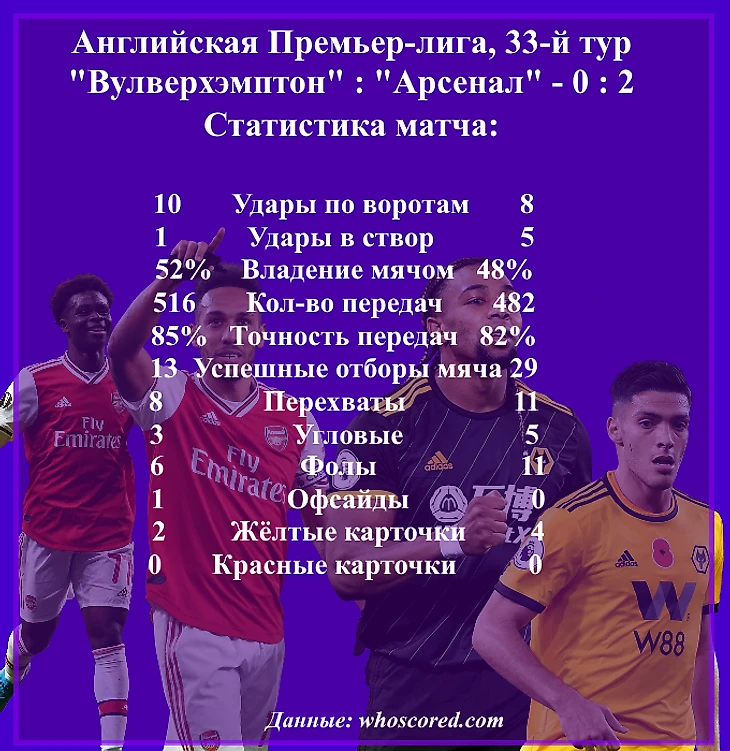 Доброго времени суток уважаемы читатели. Вашему вниманиб предлагается обзора матча 33-го тура АПЛ «Вулверхэмптон» : «Арсенал» - 0:2.