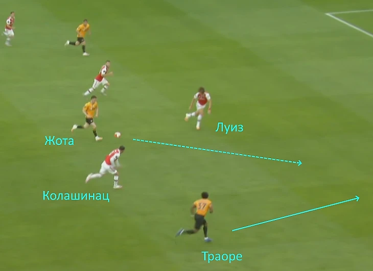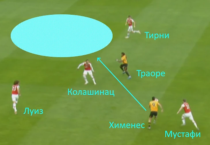 На 51-ой минуте Траоре получая мяч, рванёт правому флангу. Колашинац проигрывая в скорости, попытается оттеснить соперника корпусом, но силы слишком не равны. Траоре пройдёт по флангу и подаст на Хименеса. Мексиканский нападающий пробьёт головой, но мимо.