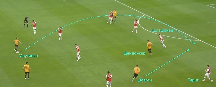 Ни Колашинац, ни Тирни не сумеют её перехватить. Доэрти завозится с мячом, и Тирни вынесет его. К счастью для «Арсенала», потенциально очень опасный момент ни к чему серьёзному не привёл.