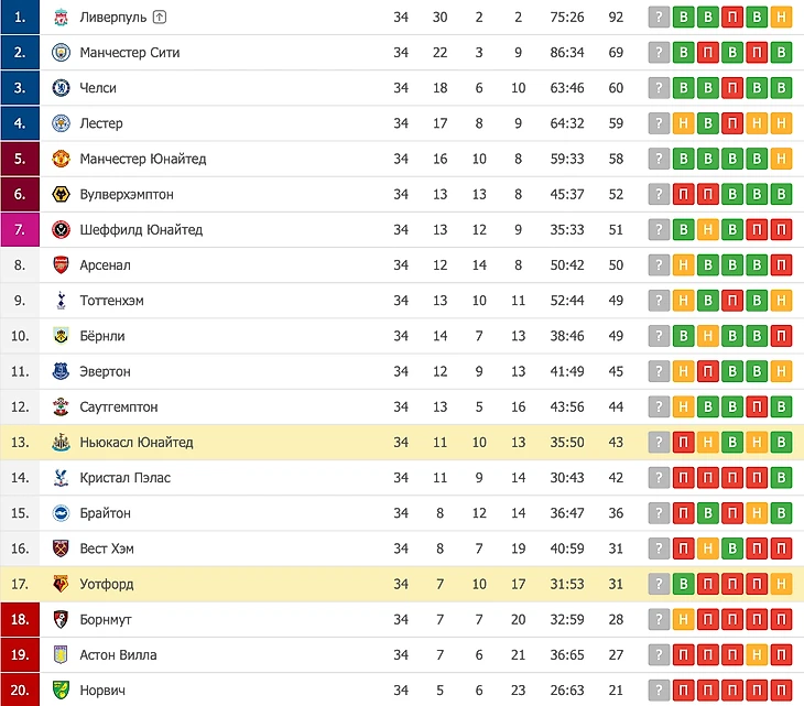 Добрый вечер, дорогие подписчики! Сегодня отдохнули от лучшей лиги мира, жеребьевку ЛЧ и ЛЕ посмотрели, хватит, пора и честь знать. Уже завтра стартует 35-й тур АПЛ, который подарит нам лондонское дерби, одну из главных битв за выживание в АПЛ и еще море интриг, хороших матчей и качественного футбола. Вы только посмотрите, какая сейчас плотность в таблице!