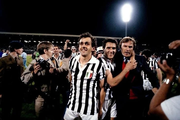 Напомню вам, господа. У Трапаттони в центре играли три опорника – великий Марко Тарделли (в зале Славы итальянского футбола), Беньямино Ваньоли, и лучший футболист Сан-Марино всех времен, брутальный Массимо Бонини составляли кулак. А впереди, перед нападающими, выступал величайший футболист Франции Мишель Платини. Такая игра - бренд для «Ювентуса», это стиль. Тарделли имел навыки играть везде, но в том сезоне играл «а-ля Пирло», но более агрессивно. С приходом Платини уступил ему место разыгрывающего, и спустился в центр, ниже.
