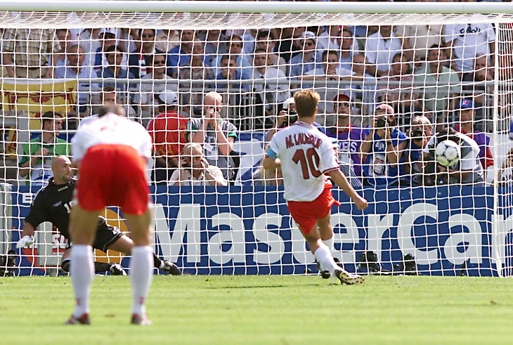 Настоящая драма Югославии. При счете 1:1 Предраг Миятович не забил с 11 метров, а на 90+2-й Эдгар Давидс (еще без очков) продемонстрировал, что он может не только стелиться в подкатах.