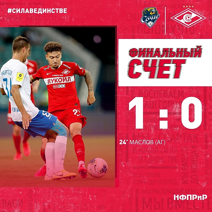 «Спартак» проиграл «Сочи», продлив свою безвыигрышную серию в РПЛ до пяти матчей