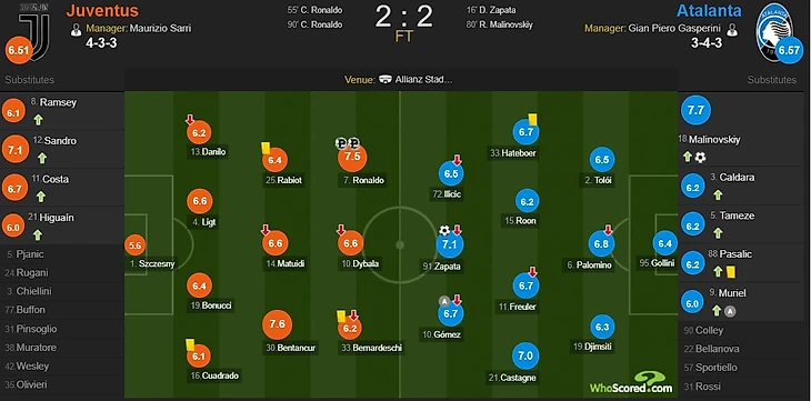 «Ювентус» и «Аталанта» поделили очки в тяжелейшем матче, сыграв 2:2. В составе «бьянконери» дважды с пенальти забил Криштиану Роналду. Однако, в составе туринцев лучшую оценку по версии WhoScored получил не португалец, а полузащитник Родриго Бентакнкур.