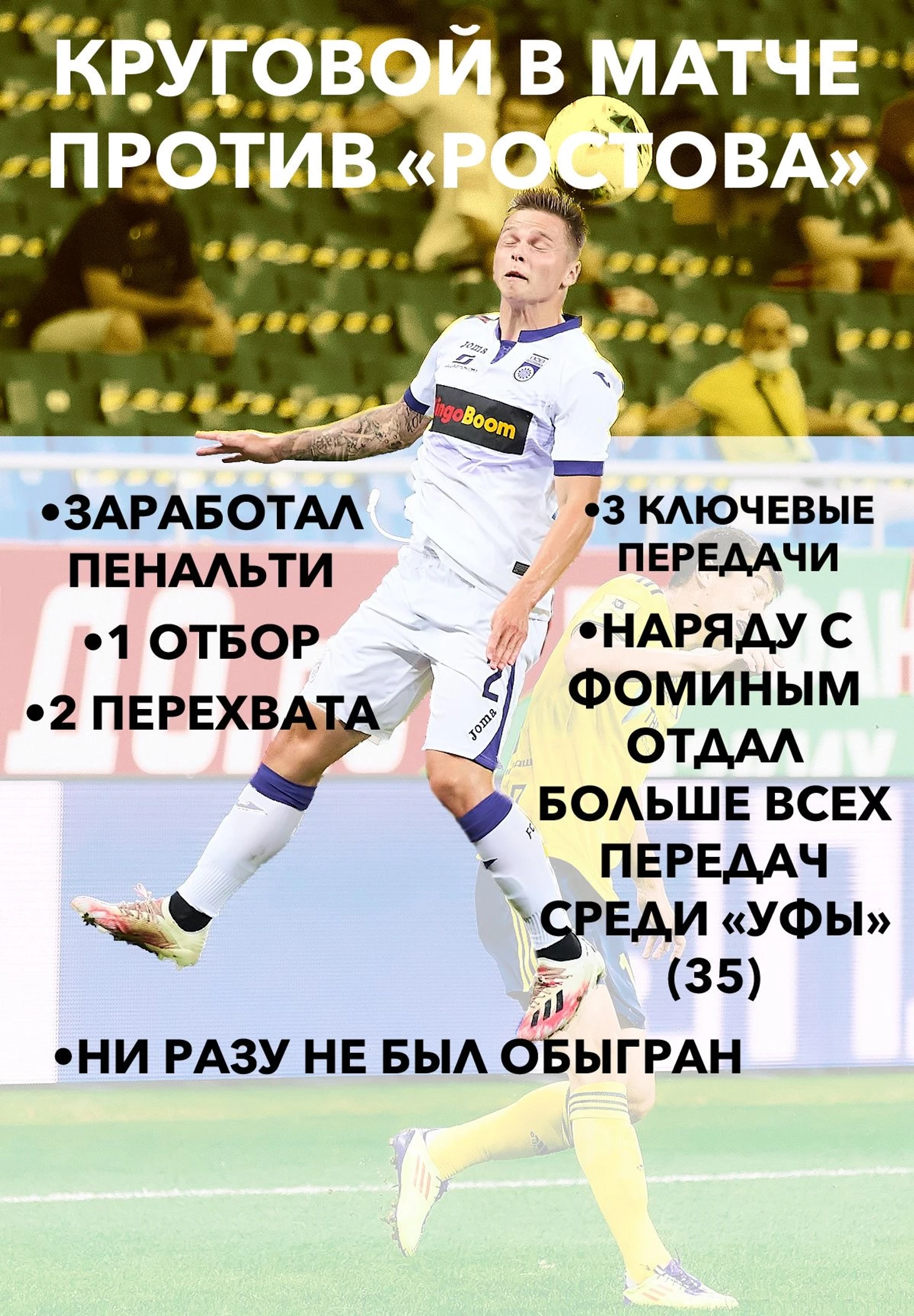 Вполне возможно, что правым фланговым защитником "Уфы" в этом матче станет Денис Терентьев: Евсеев даст ему очередную возможность проявить себя, убрав в запас опытного Александра Сухова, ибо последний провёл не лучшую игру с "Ростовом" (ни разу не отобрал, ни разу не перехватил мяч, особой пользы от него не было как в атакующей фазе игры, так и в оборонительной), а место левого латераля, скорее всего, так и останется за Данилой Круговым, причина, по которой я думаю, что будет именно так, ниже.