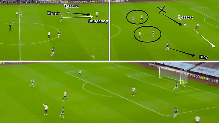 Через минуту произошла атака как под копирку. После углового и аута игроки Юнайтед еще не успели выбежать в прессинг, а Трезеге рванул все в ту же зону Ван-Биссаки: