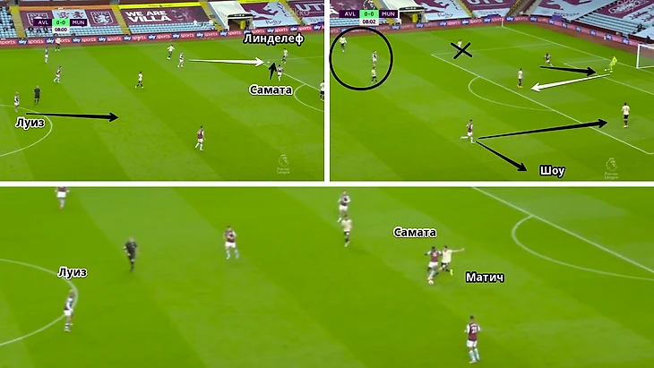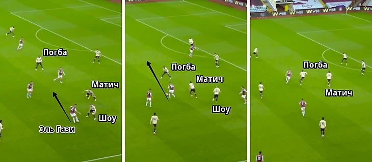 Шоу, Матич и Погба спокойно передают его друг другу и удар игрока Астон Виллы не нес впоследствии ничего опасного.
