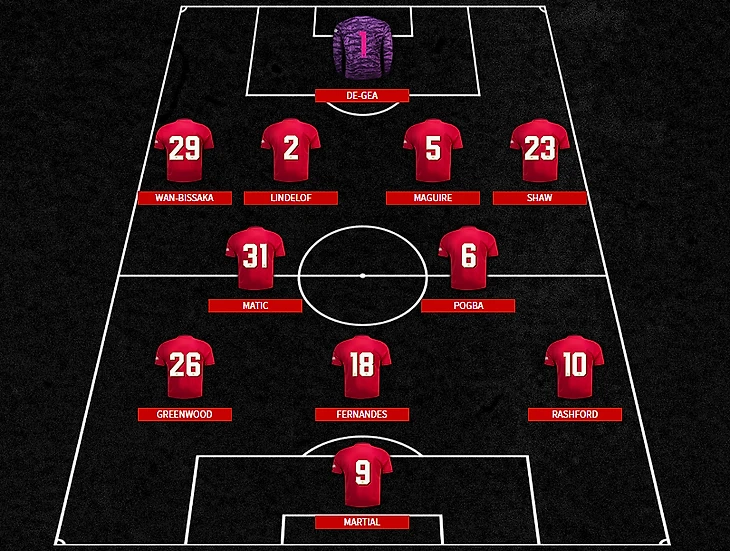 До конца тайма ничего существенного не происходило, помимо уже упомянутого паса назад Люка Шоу. Ничто не предвещало, но приступ гениальности от Антони Марсьяля в роли «девятки» привел к опасному моменту, ассисту, и голу в раздевалку от Мэйсона Гринвуда: