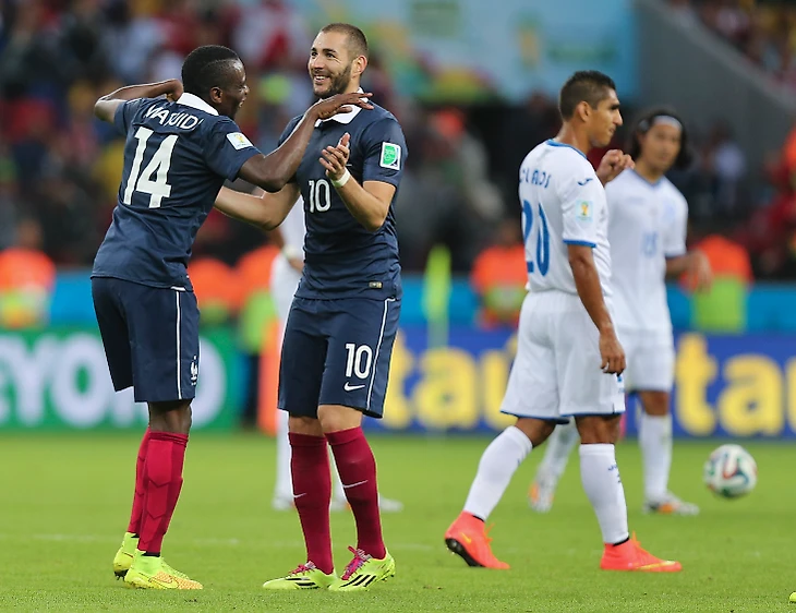 Редкий кадр – Карим Бензема радуется голу за сборную Франции. Форвард «Реала» положил двушку Гондурасу.
