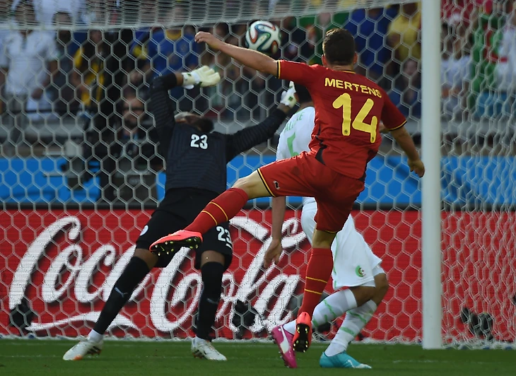 Бельгия долго мучилась, но все-таки замучила Алжир. Дрис Мертенс вбивает мяч в девятину.