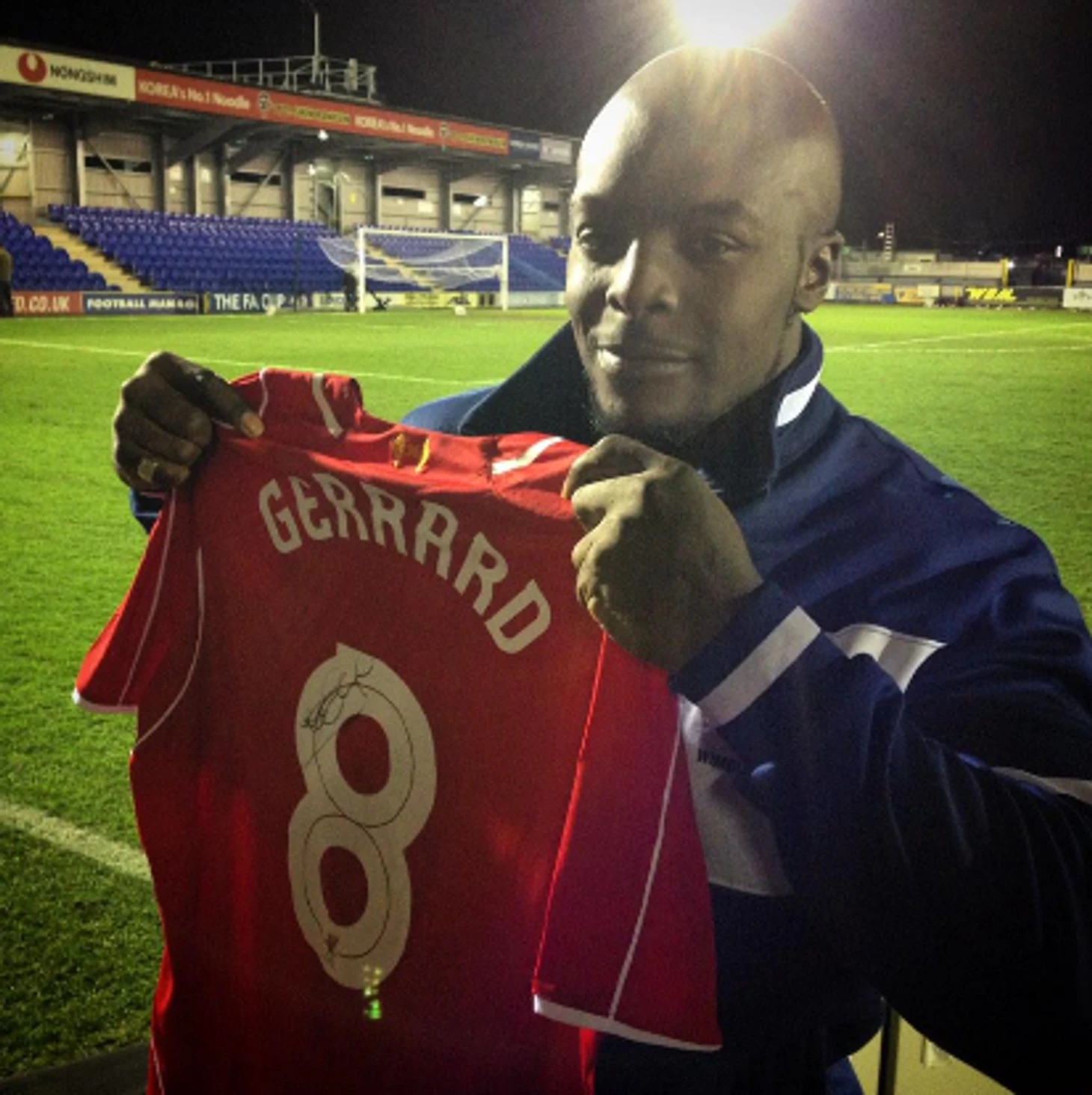 В 2015-м «Уимблдон» пересекся с «Ливерпулем» в Кубке Англии. Проиграли 1:2, но Акинфенва был счастлив: после матча он получил футболку Стивена Джеррарда с автографом.
