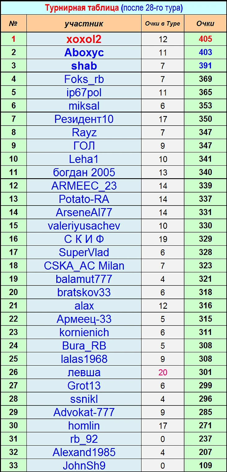 Турниры по прогнозам. РПЛ 2019-2020. Итоги 28 тура
