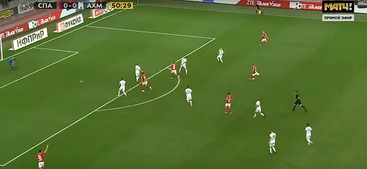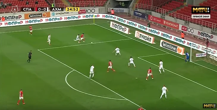 Олицетворением этой части сезона "Спартака" является второй гол Спартака в ворота "Ахмата". Началось все с Жиго, которого уже не первую игру манит в атаку. Француз каким-то немыслимим образом ушел от трех игроков соперников, прошел свою половину поля и отдал точный пас на Александра Соболева, который впоследствии отличился взятием ворот.