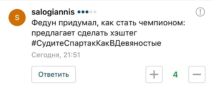 Федун придумал, как стать чемпионом: предлагает сделать хэштег #СудитеСпартакКакЗенит