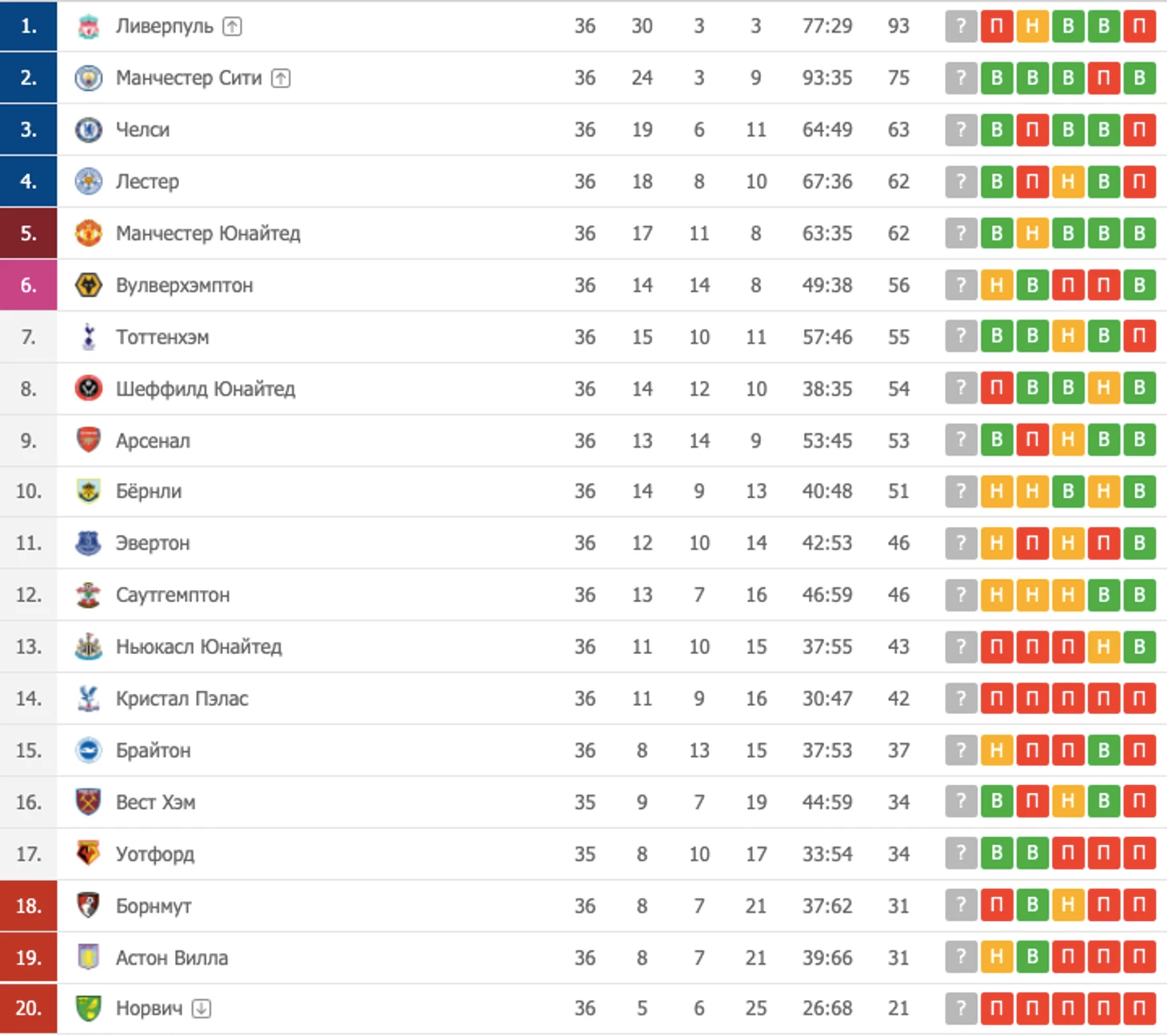 Всем привет, дорогие читатели! Сегодня поздним вечером в матче за шесть очков «Вест Хэм» и «Уотфорд» решат, кто спасется заранее и со спокойной душой может мечтать о следующем сезоне, а кто будет оглядываться на «Борнмут» (перебивший «Манчестер Сити» на его же поле) и «Астон Виллу». До конца АПЛ всего лишь два тура, друзья, и ситуация накалена не на шутку. Потеряли шансы на ЛЧ «Шеффилд» и «Вулвз», «МЮ» одержал важную победу над «Кристал Пэлас», а батя и секс-символ АПЛ Оливье Жиру, как мы и обещали в прошлом превью, оставил «Челси» в гонке за ЛЧ. Давайте же еще раз насладимся плотностью таблицы перед решающими матчами. Только на первые две строчки и последнюю не смотрите, там неинтересно.