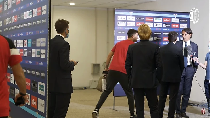 После матча игроки и тренерский штаб направились к заднему выходу стадиона: Чалханоглу покинул здание прихрамывая и записывая голосовое сообщение (наверное, делился с женой радостью от победы), Пиоли обнялся с Симоне Индзаги и оба отправились к журналистам для мини-интервью подводить итоги встречи, а Романьоли идя на выход заметил все того же Индзаги и похлопал его по плечу.
