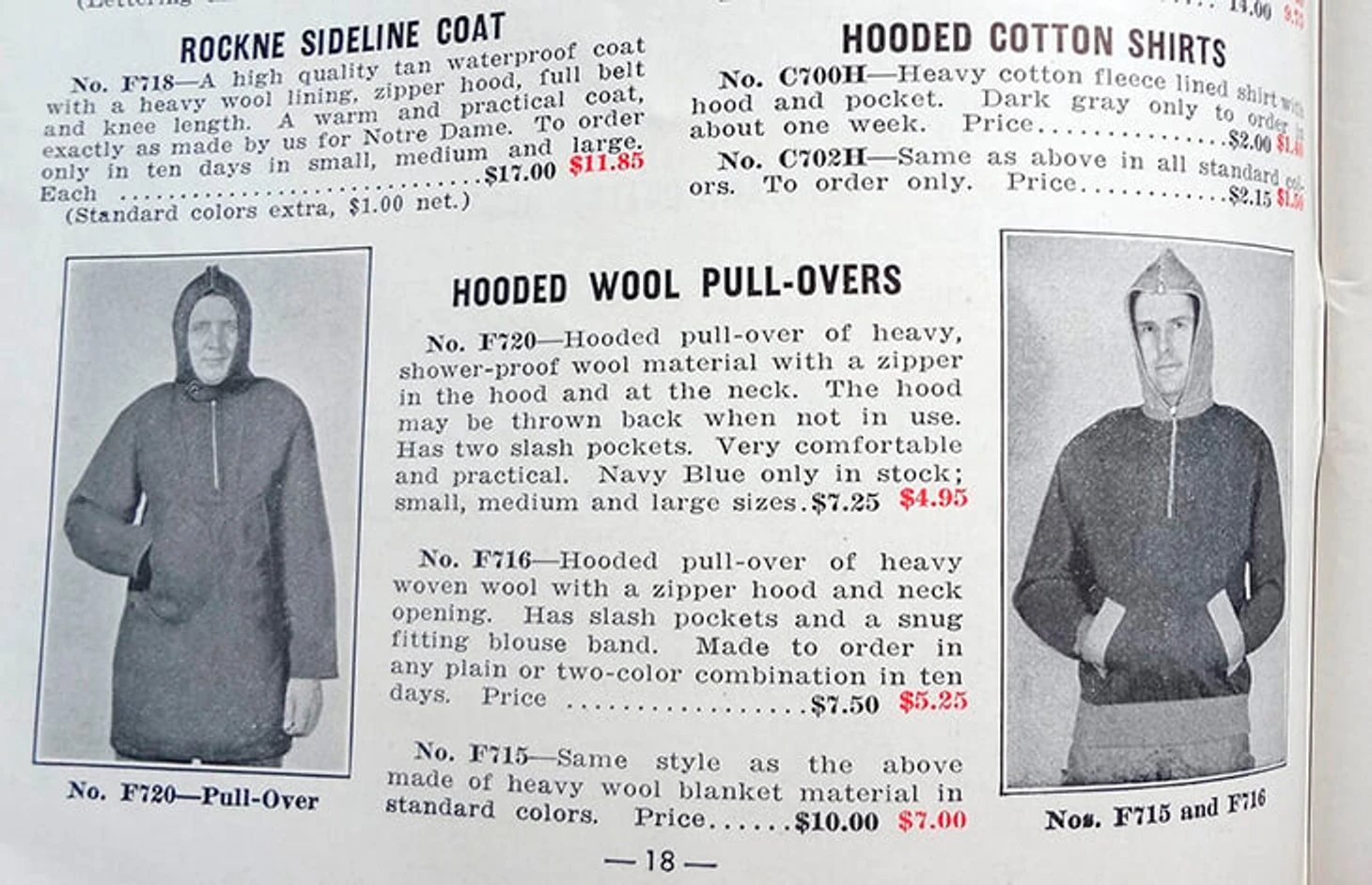 Спортсмены должны были надевать худи на разминку, носить между тренировками и матчами, а запасные сидеть в них на боковой и не мерзнуть. Эластичные манжеты и низ не пропускали холодный воздух, капюшон укрывал лицо от ветра и дождя. Очень хорошо одежду приняли в американском футболе.