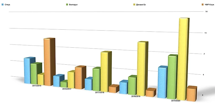 Серьезного успеха достиг "ЧФР Клуж". В 2016 клуб, благодаря большим вложениям инвесторов, сумел выбраться из долгов. В дальнейшем команду дважды ждало чемпионство.