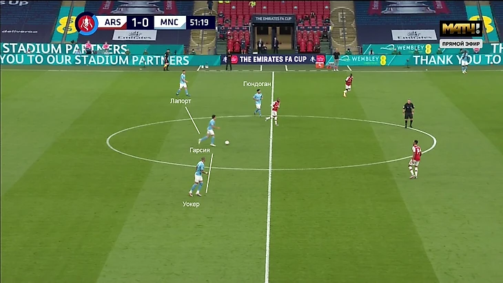 «Сити» не был готов к такому прессингу. Мяч продвигался медленно. Несколько раз случались опасные потери.
