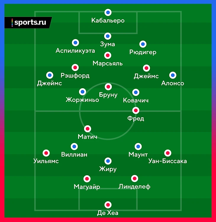 В атаке Сесар тоже был продуктивен. «Юнайтед» путался при его походах вперед. Он смело шел из центра защиты, а соперники не могли разобраться, кто отвечает за испанца. Брэндан Уильямс уже играл против Риса Джеймса. Рэшфорд был нападающим и не опускался настолько глубоко при обороне. Формально выдергиваться мог Матич, но это оставляло бы всю опорную на Фреда: