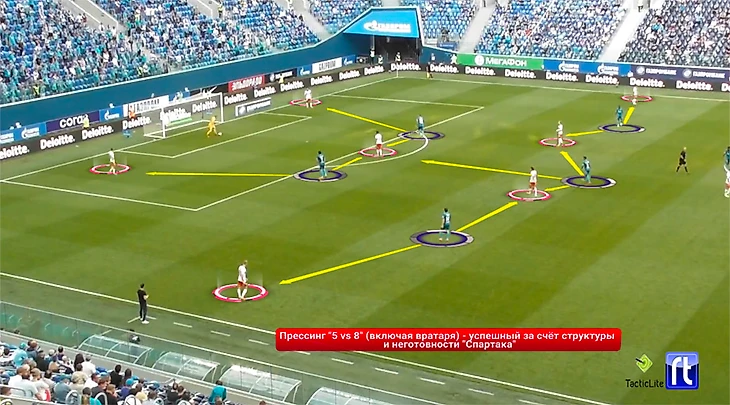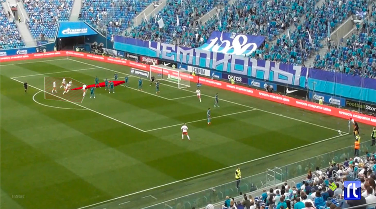 План «Зенита» №2: прессинг при свободных ударах, затрудняющий «Спартаку» выход из обороны