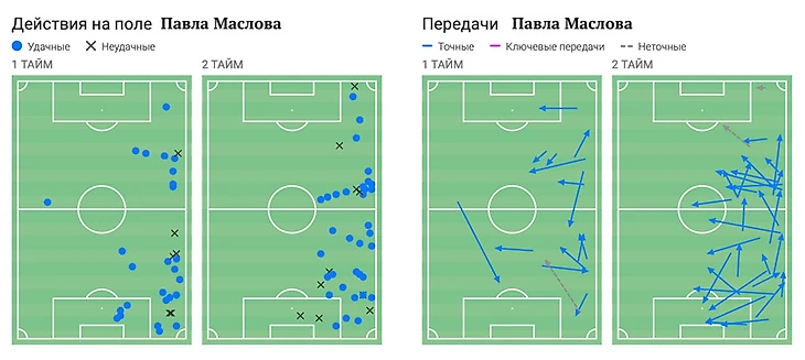 Матч показал, что решение Тедеско оказалось ошибочным: Маслов сыграл ненадёжно сзади и совсем слабо впереди, тогда как Рассказов, появившись во втором тайме, моментально усилил давление в своей зоне.