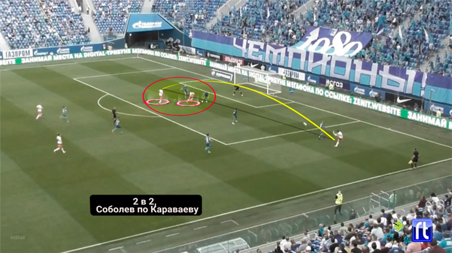 Второй очень важный нюанс: умеренно-активный метод обороны «Зенита». Команда пусть и не делала ставку на постоянный прессинг, но в конкретных игровых ситуациях включалась в коллективный агрессивный отбор. Например, при свободных ударах «Спартака». По телевизионным камерам этот пункт казался не таким определяющим (после выхода мяча за пределы поля там всегда крутят повторы), но на технической записи масштабы чувствуются в полном объёме.