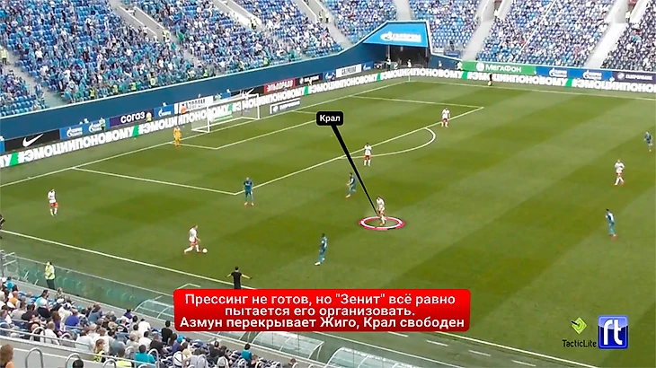Или могло помочь просто умение полузащитников сбрасывать давление индивидуальными действиями. Но что Умяров, что Крал одинаково неуверенно работают с мячом, когда принимают его спиной к чужим воротам.