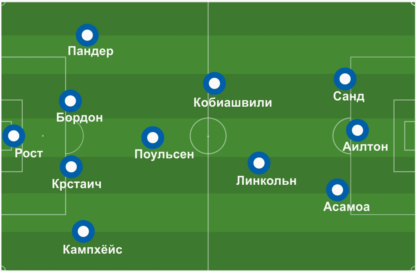 За центр поля в «Шальке» отвечали, в первую очередь, датчанин Кристиан Поульсен и грузинский полузащитник Леван Кобиашвили, в атаке, помимо упомянутого Аилтона, действовали опытный датский форвард Эббе Санд и немецкий нападающий ганского происхождения Джеральд Асамоа.