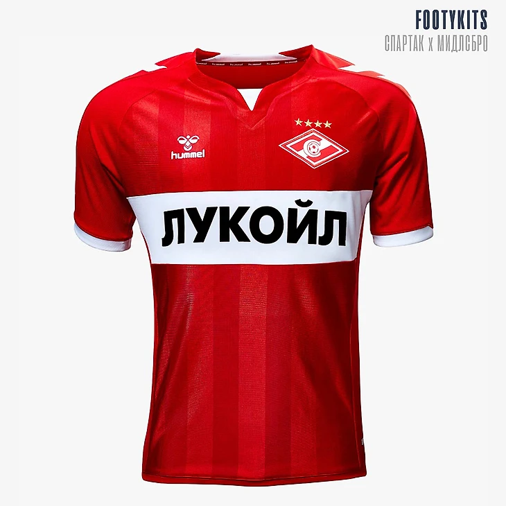На этот раз скрещиваем "Спартак" и прошлогоднюю форму "Мидлсбро" производства Hummel.