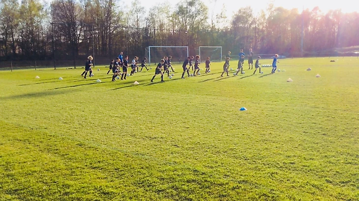 Футболисты работают в группах, а упражнения сильно похожи на игровые ситуации. Тренеры требуют комбинационной игры с различными завершениями атак, пасов в одно касание и качественного исполнения.