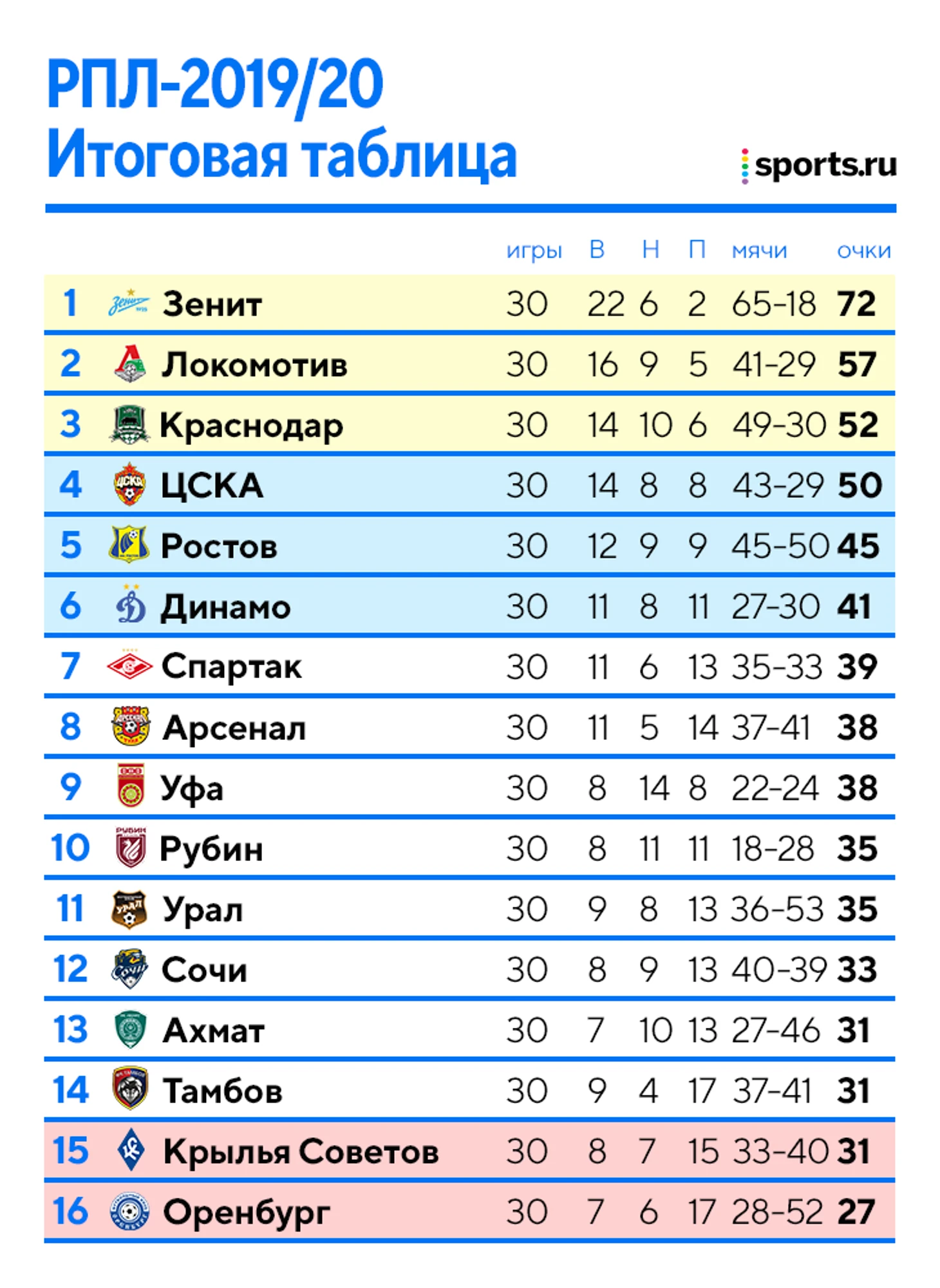 Все, РПЛ закончилась! «Зенит» – чемпион, «Оренбург» и «Крылья» – вылетели, «Спартак» остался без еврокубков. Вот так выглядит итоговая таблица чемпионата России.