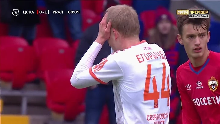 12. В первом матче после перерыва едва не случилась сенсация – «Урал» идиотски упустил победу над ЦСКА, который категорически не проигрывал «шмелям» после возвращения в элиту. Егорычев в концовке губит размашистый голевой момент, и Марио Фернандес тут же делает счет 1:1.