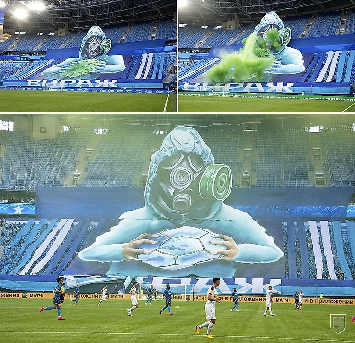 Первая игра на «Газпром-Арене» после возобновления розыгрыша РПЛ не могла обойтись без крутого перфоманса. В коронавирус можно верить или нет. Я на этот счет все время был и остаюсь скептиком. И этот баннер воспринял как частичное избавление от проблем, вызванных необоснованной массовой истерией и изоляцией.
