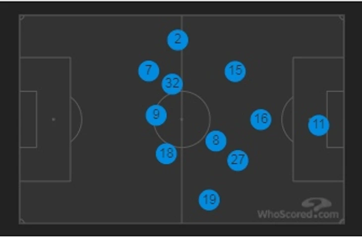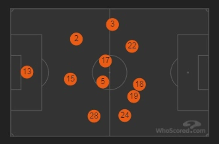 Усредненные позиции игроков "Вулверхэмптона"