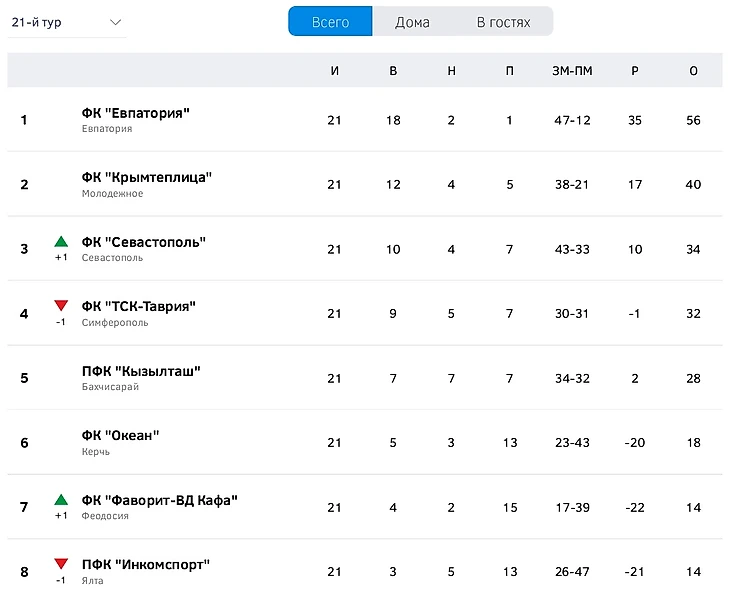 Таблица справедливости перенесла Севастополь поперед Таврии, где ему и место.