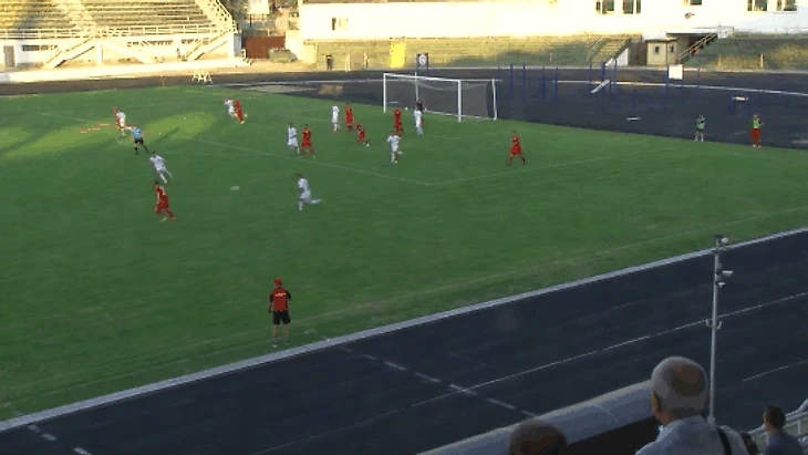 Атака, начатая вместе с проходом этого мущщины, завершилась сейвом вратаря.