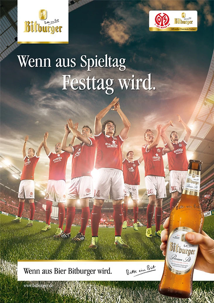 «Между Bitburger и «Майнцем 05» сложилось дружеское партнерство. Благодаря традиционным региональным корням этот бренд пива премиум-класса с национальной привлекательностью идеально подходит для футбольного клуба, представляющего Рейнланд-Пфальц в Бундеслиге. Мы очень рады что мы можем продолжать сотрудничество с Bitburger», – говорил доктор Ян Леманн, коммерческий директор «Майнца».  «Как семейная компания, мы стремимся к нашему дому и хотим создавать различные партнерские отношения в спорте и культуре. «Майнц 05», как спортивный лидер региона – идеальны партнер для нас, клуб пользуется популярностью благодаря активной и дружной базе поклонников. Мы продолжаем наше стремление к футболу в доверительном и профессиональном партнерстве», –добавляет Майкл Стампф, менеджер по продажам в Bitburger.