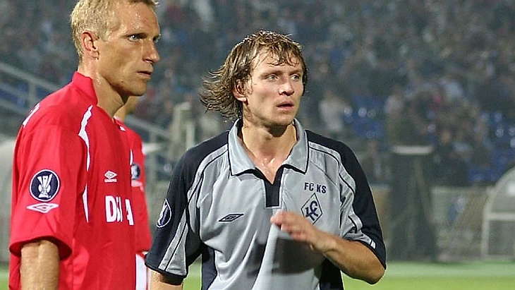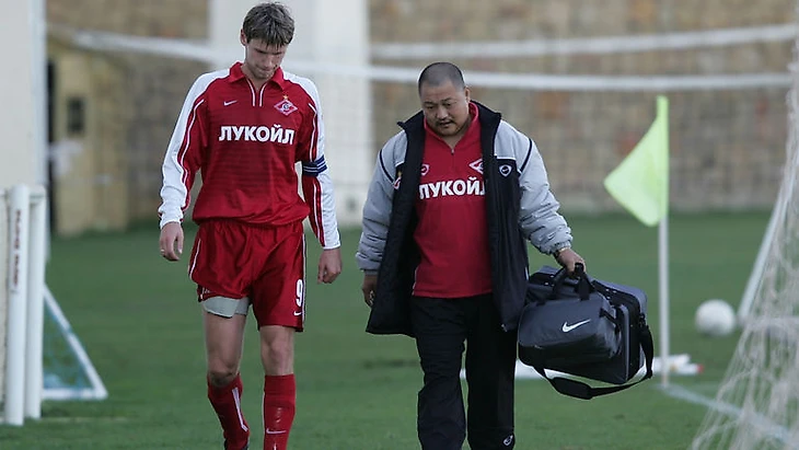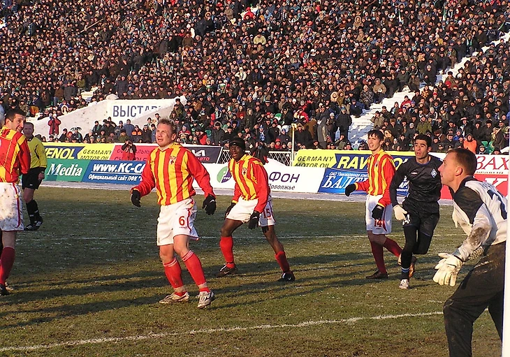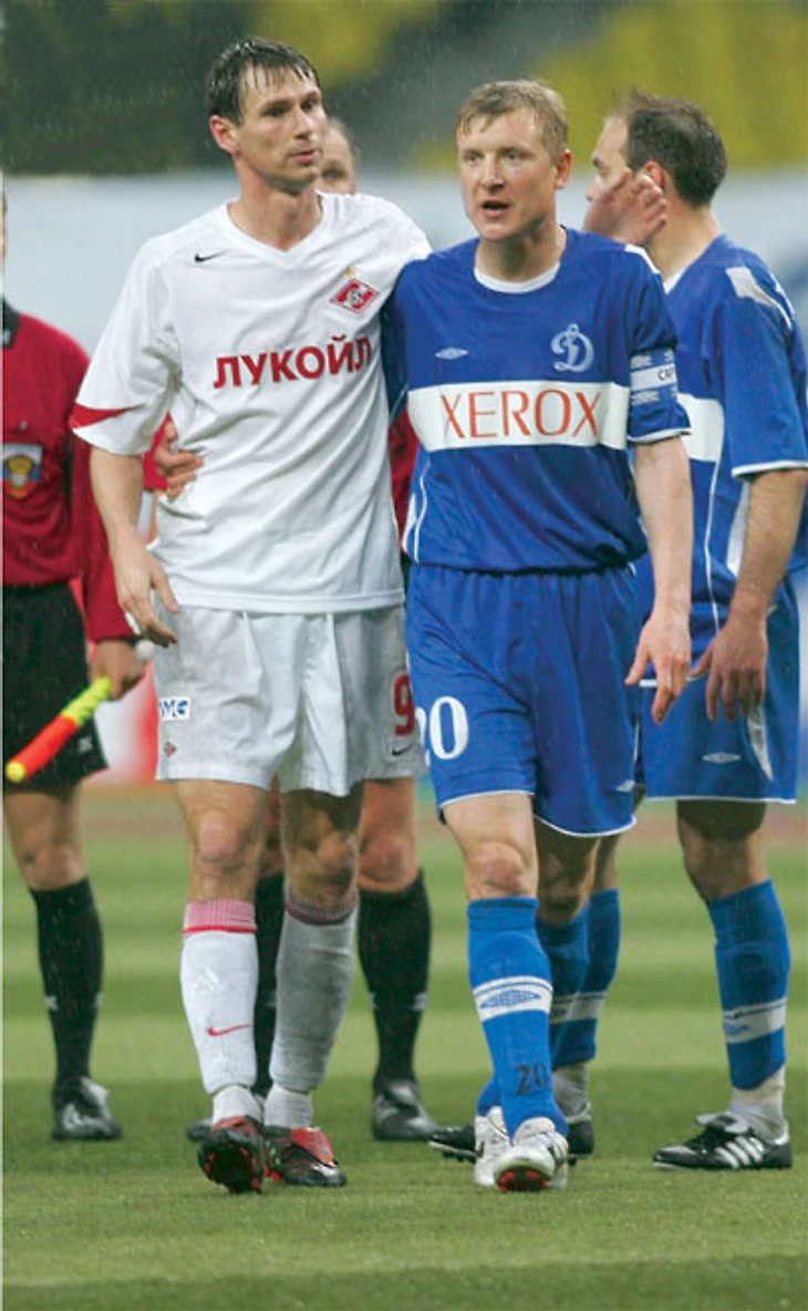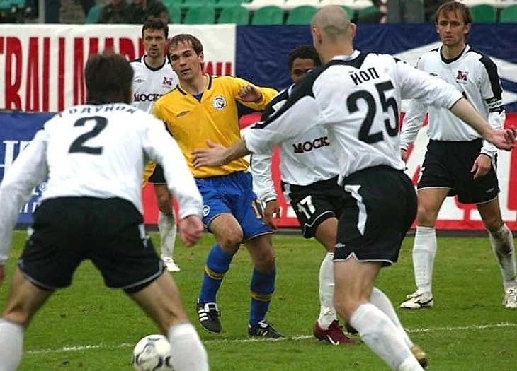 На футболках красовался логотип "Российских железных дорог" ( в три строки, не так компактно, как сейчас), забивали голы Сычев и компания адидасовским мячом в лигочемпионском исполнении.