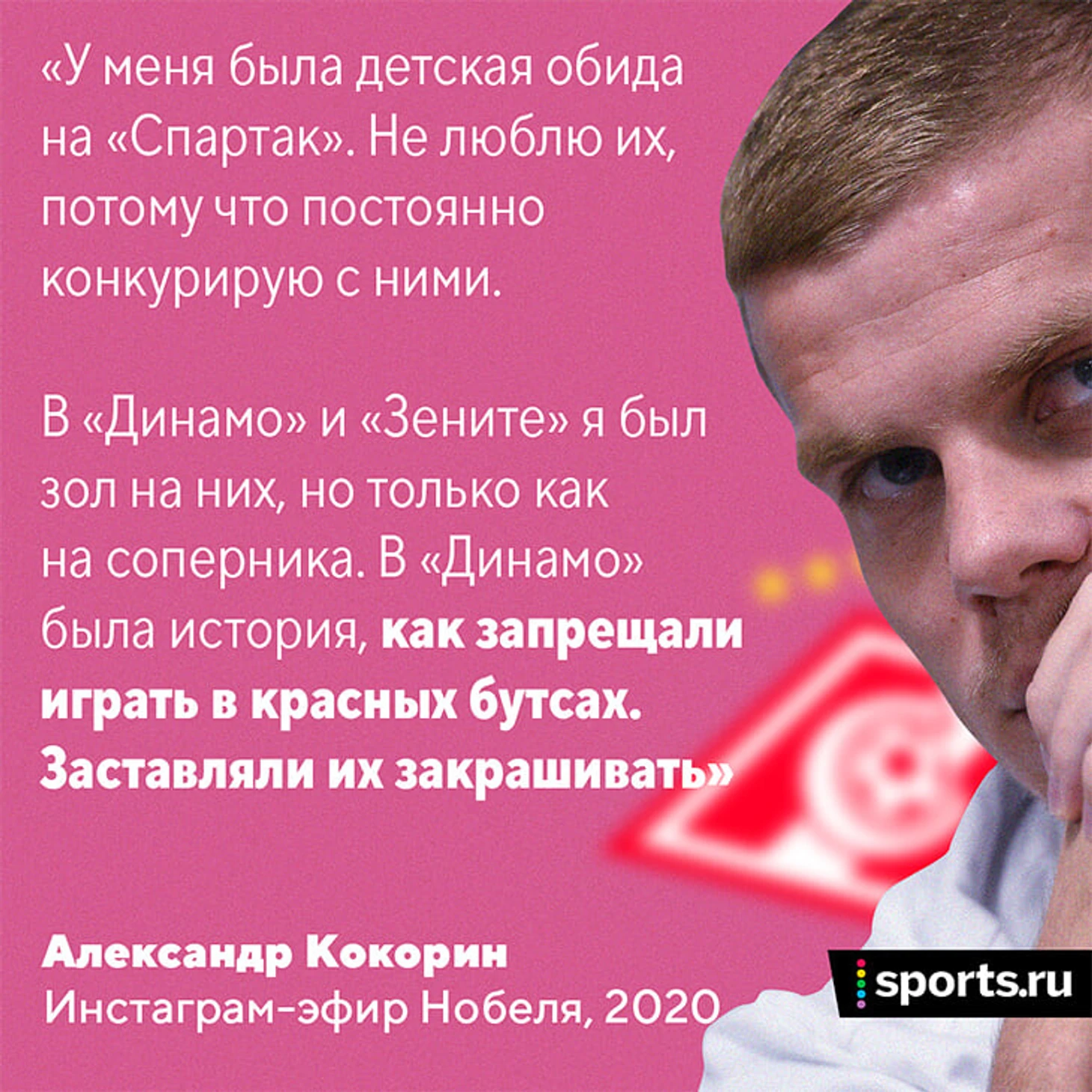 В весеннем инстаграм-эфире у Нобеля Арустамяна Кокорин говорил об обиде на «Спартак» в прошедшем времени: «У меня была детская обида на них. Не люблю их, потому что постоянно конкурирую с ними. В «Динамо» и «Зените» я был зол на них, но только как на соперника. А в повседневной жизни все нормально».