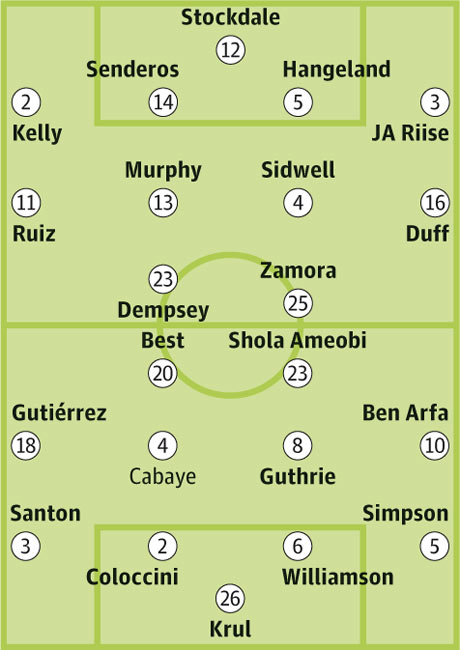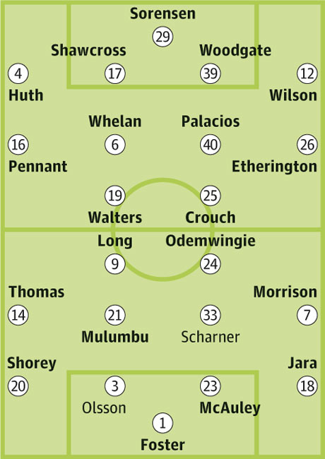 Запасные: Бегович, Апсон, Уилкинсон, Делап, Джером, Шоттон, Фуллер, Хиггинботтам, Коллинз, Диао, Уайтхед