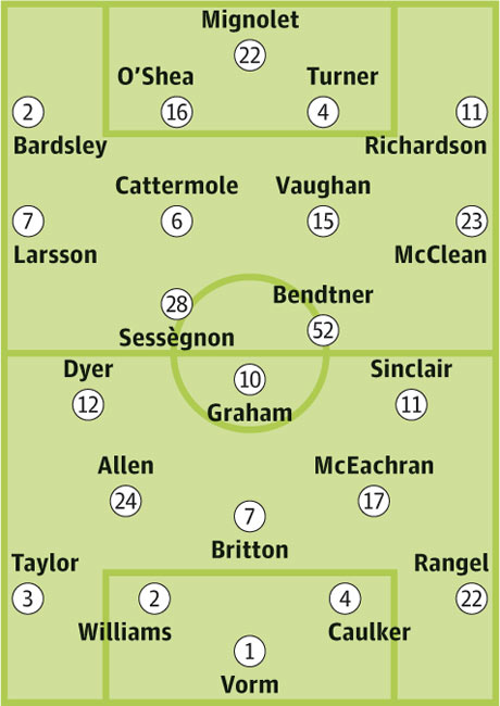 Мартин О’нил в восторженных тонах отзывался об умении игроков «Суонси» играть в пас и предупредил своих футболистов, что после победы над «Арсеналом», выходцы из Чемпионшипа станут еще увереннее в своих силах. На помощь в защитные построения североирландца придут оправившиеся от травм Уэс Браун и Тайтус Брамбл, а вот нападающий Фрэйзер Кэмпбелл вряд ли примет участие в матче. Полузащитник «Челси» Джош Макикран прибыл в Южный Уэльс только в начале этой неделе, но уже в субботу может дебютировать за новую команду, а компанию в центре поля ему постарается составить также новичок, исландец Гилфи Сигурдссон, прекрасно вписавшийся в командные взаимодействия по ходу великолепного матча с «Арсеналом».