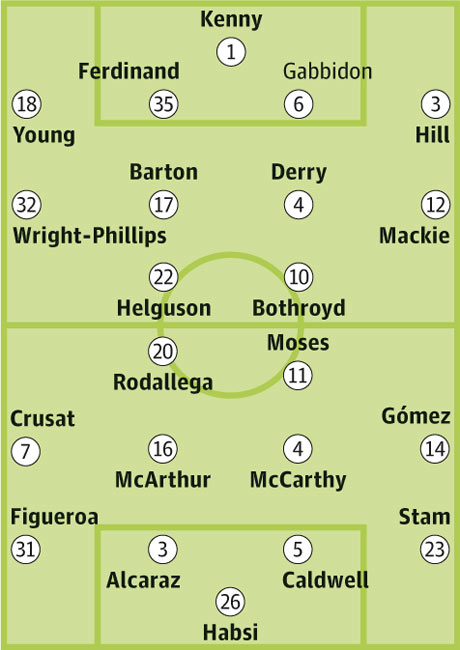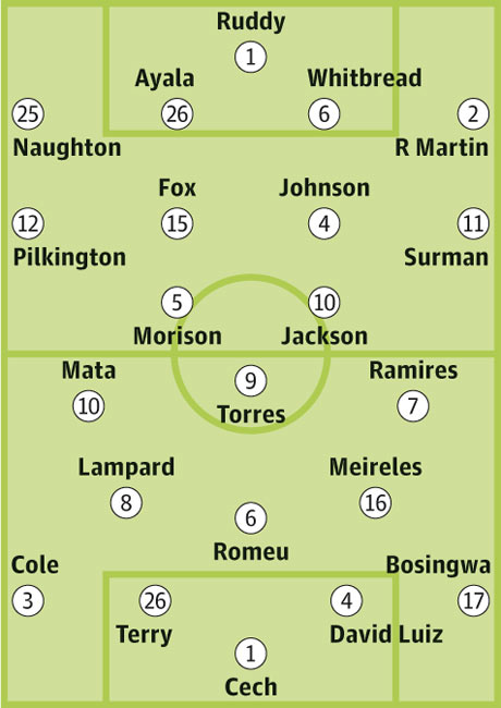 Запасные: Тернбулл, Илариу, Бертран, Иванович, Эссьен, Феррейра, Хатчинсон, Старридж, Кэйхилл, Малуда, Лукаку