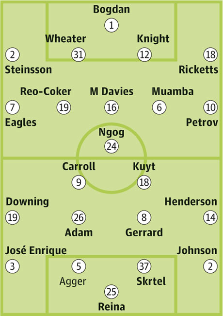 Запасные: Дони, Келли, Беллами, Родригез, Сусо, Спиринг, Каррагер, Хансен, Шелви, Флэнаган, Коатес, Аурелио